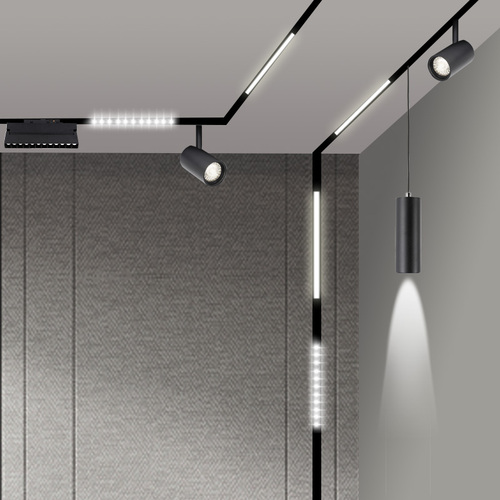 磁吸軌道燈,近兩年來非常流行,基本是無主燈設計中必備的燈具之一。磁吸軌道燈通過磁力來吸附在軌道上?,F代磁吸燈,直接讓軌道盒嵌入吊頂里面,然后燈具吸附軌道上,后續檢修和更換燈具,調整位置都很方便!